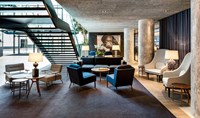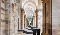 A main challenge was the atrium entrance connecting the old building with the newer hotel block. Daylight flooded the atrium by day, whilst at night the vast glass area to the roof and walls created an unwelcoming inter-reflecting dark box. Passers-by would not notice this entrance from the main street.