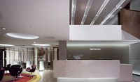 The scheme for the new head office for a leading European real estate company integrates the lighting with the architecture creating an exciting, vibrant, functional working environment. Illuminated sculptural ceilings provide interest as well as ambient light. Flexible meeting-cum-dining rooms and an ever-changing exhibition area required the lighting to be adaptable.