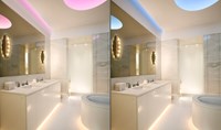 This stunning contemporary duplex showcases exceptional artwork and outstanding clean-cut architecture. Throughout, downlighting was kept to a minimum to maintain the clean lines and clean ceilings which were in turn accentuated using lines of light. Where possible the lighting was integrated into the architecture via infinity slots in the deep ceiling voids and walls, LEDs integrated into the stone staircase to create a central feature and backlit glass to create the illusion of daylight.
