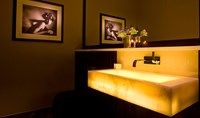 This unusual contemporary triplex has a stunning central staircase incorporating a custom-designed chandelier, along with a lower ground floor spa and garden. The lighting throughout is integrated into joinery and architecture to highlight the luxurious finishes and add drama and atmosphere to this high specification apartment.