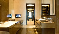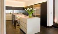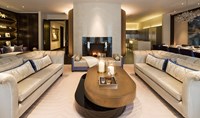 This unusual contemporary triplex has a stunning central staircase incorporating a custom-designed chandelier, along with a lower ground floor spa and garden. The lighting throughout is integrated into joinery and architecture to highlight the luxurious finishes and add drama and atmosphere to this high specification apartment.