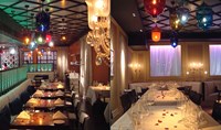 London's oldest Indian restaurant has been rejuvenated with a dramatic lighting scheme to enhance the exotic interior design creating a modern ambience. A mixture of modern and natural candle light is fused together with traditional hand-made coloured "Hundi" lamps to recreate the sparkle, warmth and glamour of this restaurant as bestowed in the 1920's.